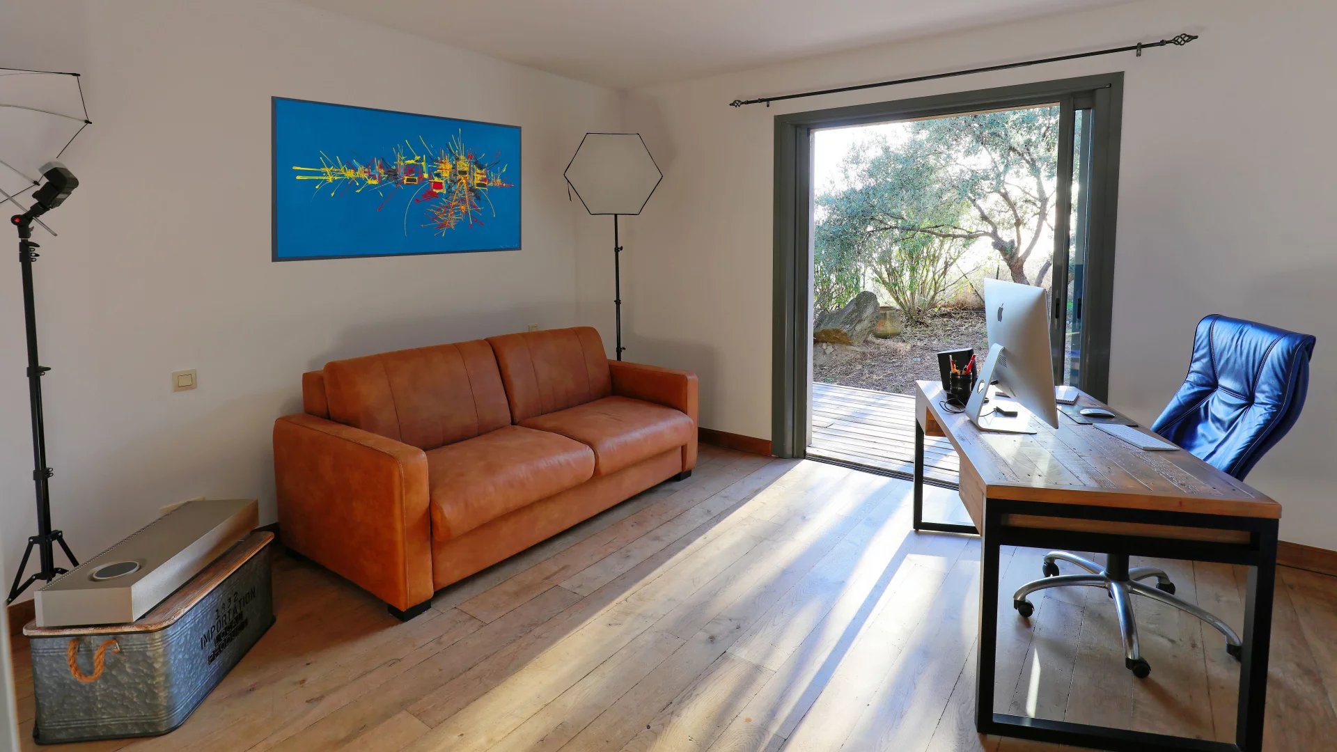 La villa se distingue par un grand salon-cheminée, une salle à manger